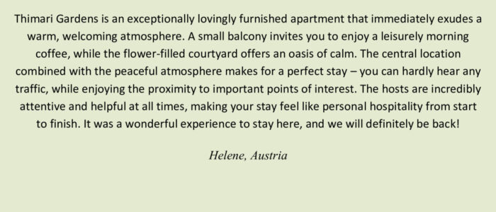 If you wish to ask about our rental offer, send an email at thimarigardens@gmail.com