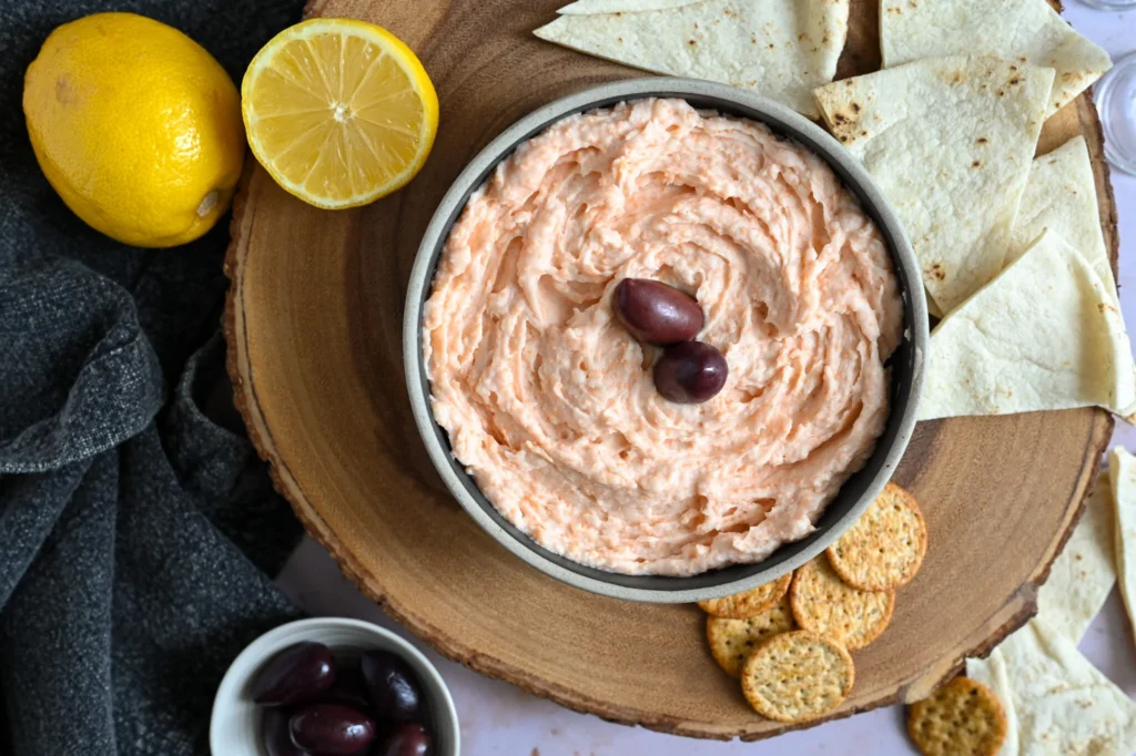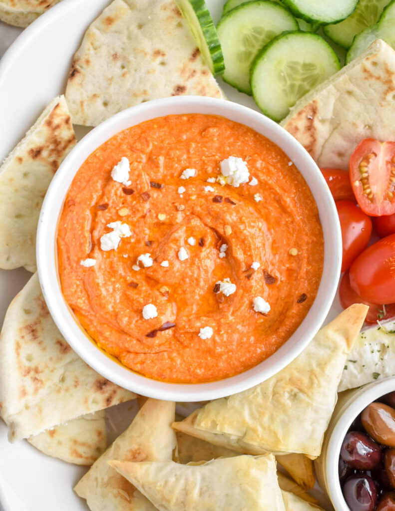 The last dip requires the use of feta, the most famous Greek cheese. It is called tirokafteri and, apart from the cheese, it contains roasted peppers, chilli peppers, olive oil, vinegar and garlic. This appetiser is creamy and spicy, a real flavour bomb!