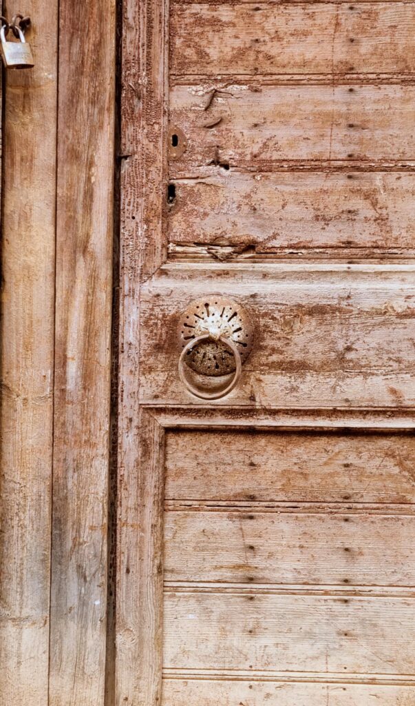 Sometimes they allow us to peek inside, often strictly shielding what is private or secret. They speak of the status of the residents, their ups and downs. Some demand that we stop respectfully and use a knocker or bell, while others allow us to glance inside through a crack worn by time. Sometimes, half-open, they invite guests in. They show time, its passage, history, civilisational changes, and bear traces of wars, shootings and protests.