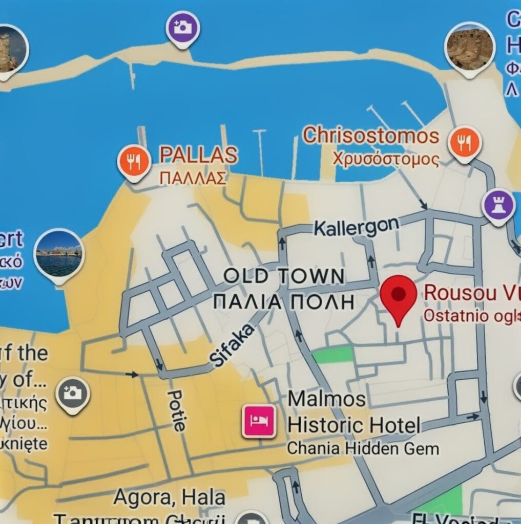 Our property – Thimari Gardens – is located in the old town of Chania, Crete, Greece. The exact address of our home is :