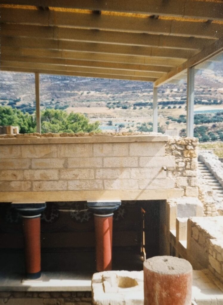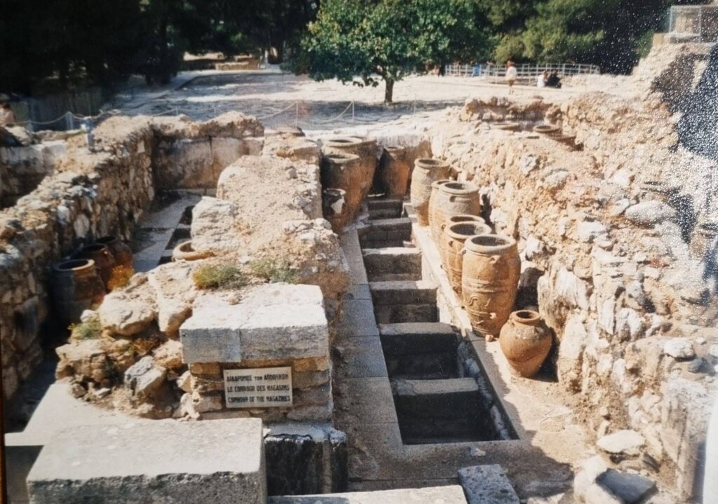 But don’t let that discourage you. It’s a minor detail when you consider that it was thanks to this passionate archaeologist that the palace complex was excavated (not discovered, as the credit for that goes to the Greek Minos Kolokairinos, who was already aware of the existence of the then underground complex in 1878) and protected from looting. The palace buildings owe their stability to the infamous concrete, and some of the original frescoes have been preserved and can be admired in the Archaeological Museum in Heraklion.