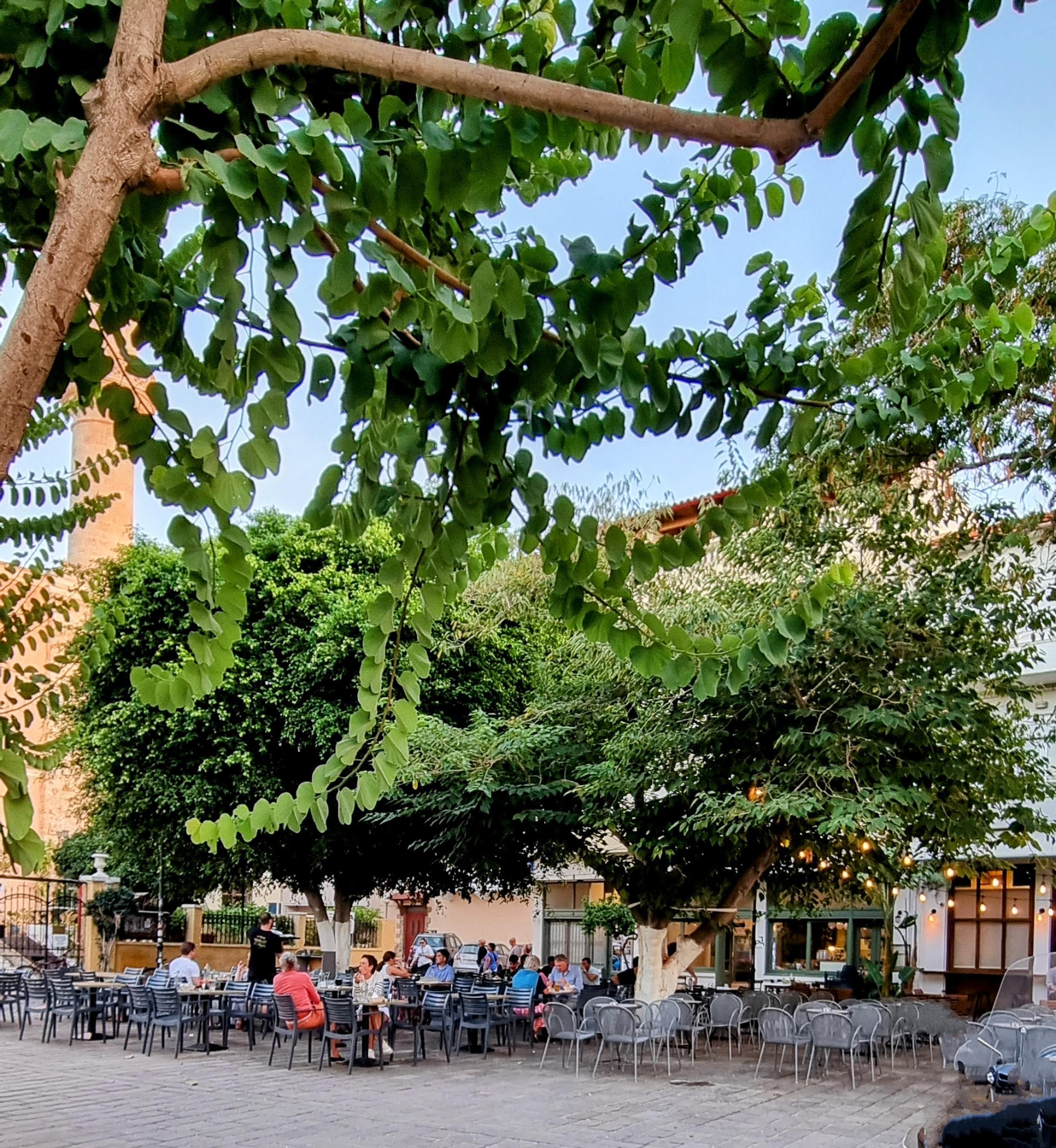 The Splantzia district after the Turks had been made to leave it (and whole Crete) entirely in the 1920s was synonymous with neglectand rough neighbourhood. However in recent years it has cleaned up its act, with many of its houses renovated, lots of young and alternative businesses popping up, and it has transformed into the most independent district of the old town. Fortunately, it has not yet succumbed to mass tourism, so it retains its local atmosphere, making it ideal for those seeking refuge rather than a tourist hotspot. The centrepiece of the neighbourhood is the historic square, officially known as ‘Plateia 1821’, with the equally historic Dominican church of St. Nicholas mentioned before. Either at the square or just a few steps away, you will find everything you need: a bakery, a mini-market, a pharmacy, a bookshop, a laundrette, as well as many interesting and high-quality restaurants and bars. Some of them are located right next to the square, under an old tree, which offers a pleasant place to relax on hot summer days and nights.